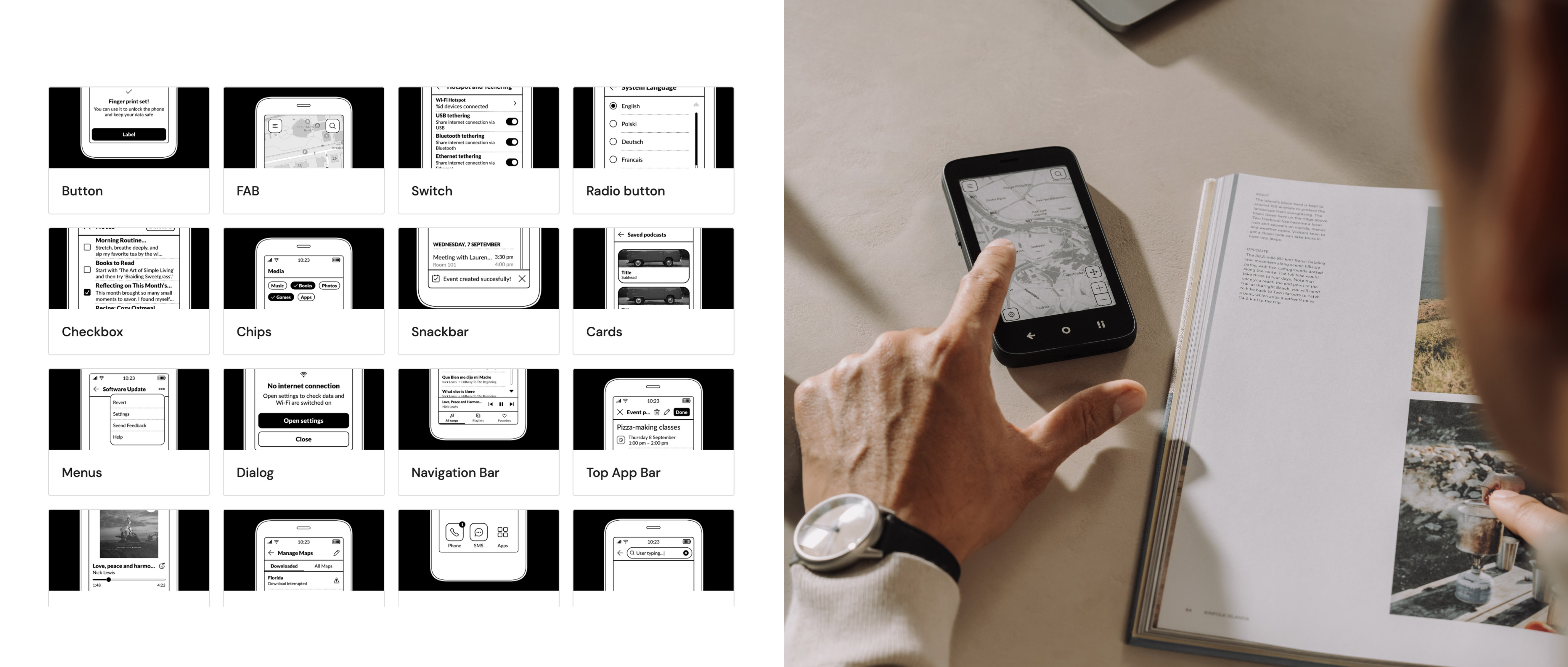 Designed UX/UI for Mudita OS, including system interfaces and applications across multiple hardware products: